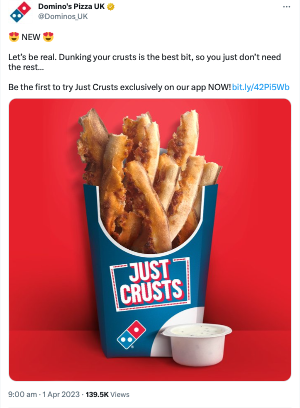 இந்த இடுகை ஒரு முக்கிய இடத்தைப் பற்றியது உண்மையில் மேலோடுகளை விரும்பும் பீஸ்ஸா பிரியர்களின் குழு. எனவே, இந்த வாடிக்கையாளர்களுக்கு ஒப்புதல் அளிக்கும் விதமாக, இந்த ஆண்டு ஏப்ரல் ஃபூல்ஸ்க்காக தங்கள் பயன்பாட்டில் பீட்சா க்ரஸ்ட்களை ஆர்டர் செய்வதற்கான விருப்பத்தை டொமினோஸ் அறிவித்தார்.