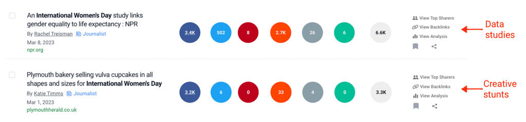 BuzzSumo அவர்களின் அறிக்கையில் சில முக்கிய விழிப்புணர்வு நிகழ்வுகளை பகுப்பாய்வு செய்தது: 600K பத்திரிக்கையாளர்கள் பகுப்பாய்வு செய்யப்பட்டனர்: பத்திரிக்கையாளர்கள் & பிட்ச்சிங் பற்றி நீங்கள் தெரிந்து கொள்ள வேண்டிய அனைத்தும், மேலும் அவர்கள் உங்கள் நேரத்திற்கு தகுதியானவர்களா என்பதைக் கண்டுபிடிப்பது எப்படி என்று உங்களுக்குக் காட்டியது.