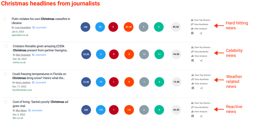 இங்கே சில உதாரணங்கள் அடிப்படையாக உள்ளன பிரபலத்தை மதிப்பிடும் BuzzSumo முறை மற்றும் பத்திரிகையாளர்கள் உண்மையில் எதைப் பற்றி எழுதுகிறார்கள்.