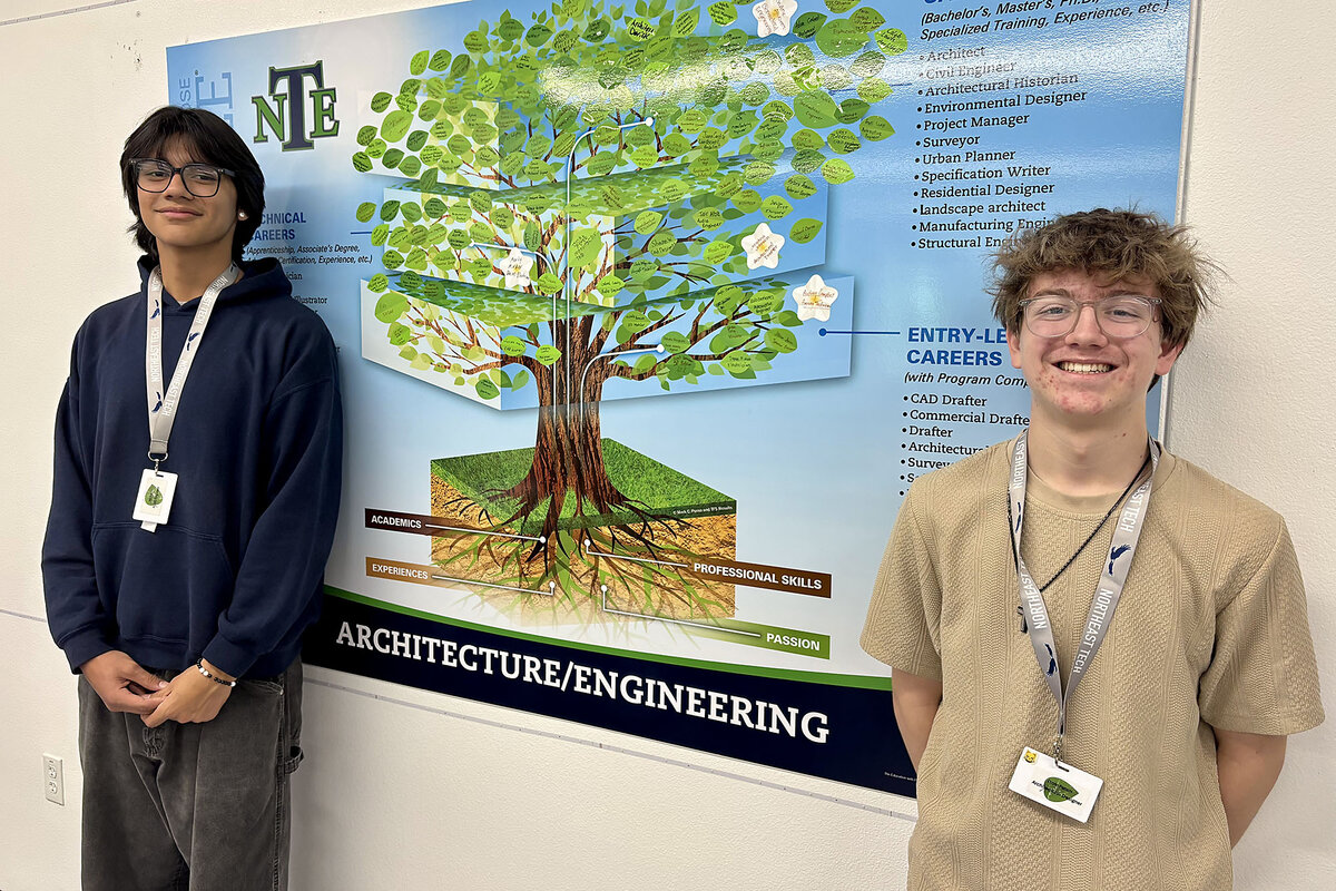 Jair Alba (left) and Ozzie Patton, both juniors at Northeast Career and Technical Academy, say they rarely miss a day of school given courses that align with their career interests.